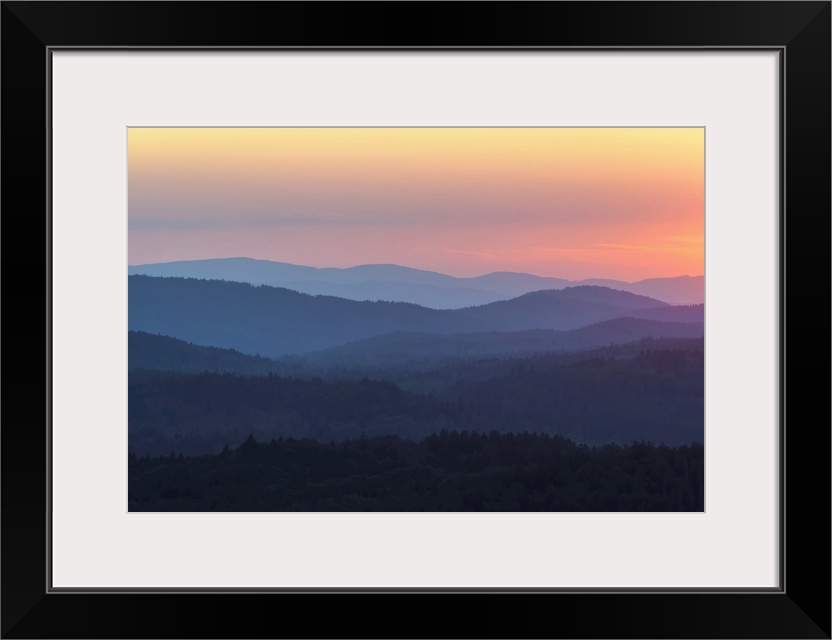 <p>View from Lusen mountain over the Bavarian Forest at sunset at Waldhauser in the Bavarian Forest National Park, Bavaria, Germany</p>