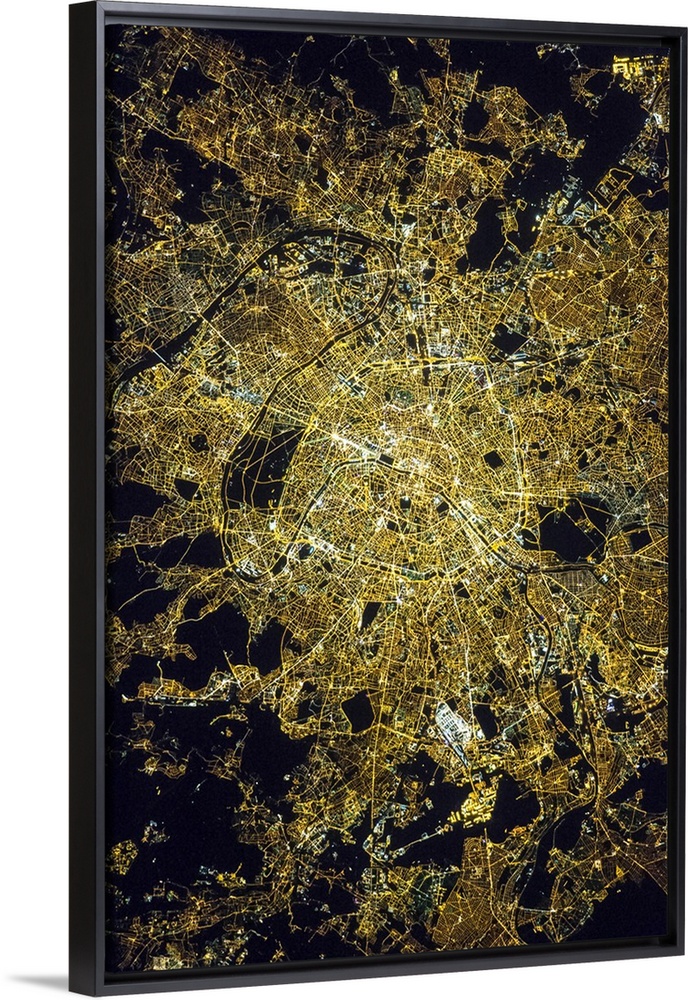 <p>View from space of Paris, France, showing the pattern of the street grid and city lights at night.</p>