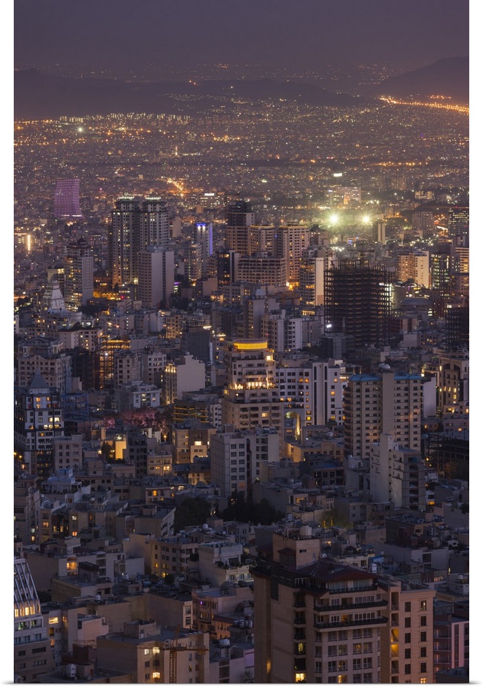 <p>Iran, Tehran, elevated city skyline with view tfrom the Roof of Iran Park towards the Milad Tower, dusk</p>