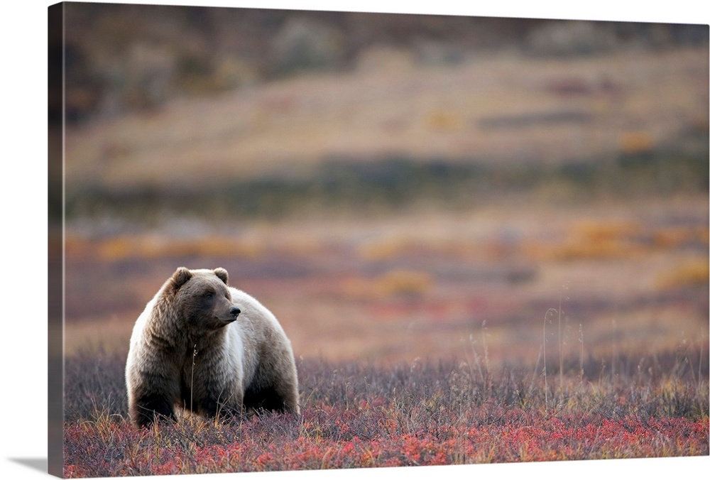 <p>View of a Grizzly Bear standing in the fall tundra, Denali National Park, Interior Alaska</p>