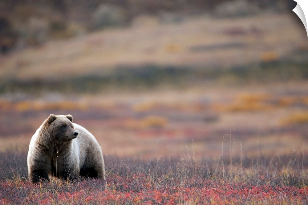 <p>View of a Grizzly Bear standing in the fall tundra, Denali National Park, Interior Alaska</p>