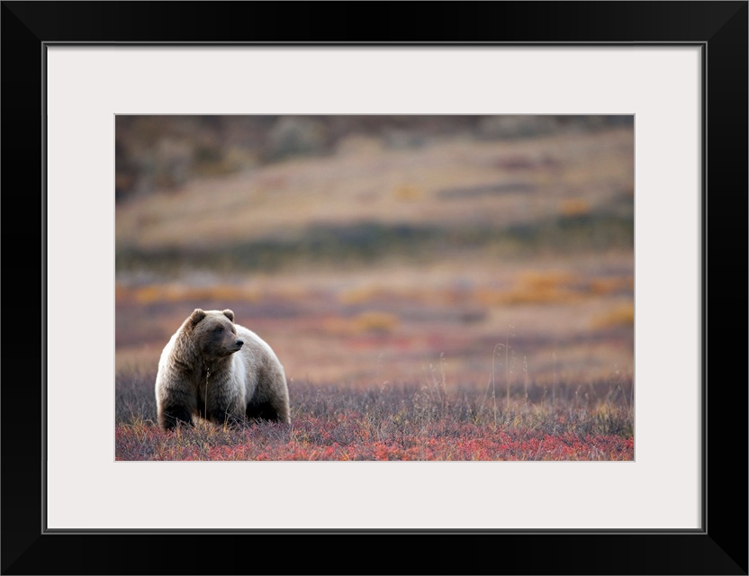 <p>View of a Grizzly Bear standing in the fall tundra, Denali National Park, Interior Alaska</p>