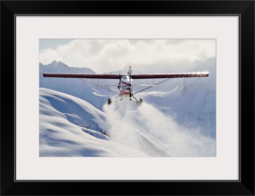 <p>View of a Super Cub air taxi at Tanaina Glacier in the Neacola Mountains, Aleutian Range, Alaska, Winter.</p>
