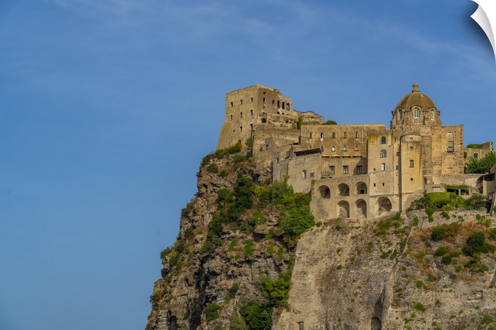 <p>View of Aragonese Castle at sunset, Port of Ischia, Island of Ischia, Campania, Italy, Europe</p>