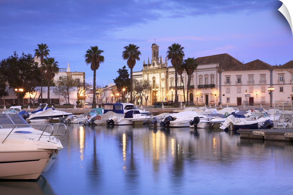 <p>View of Arco da Vila Across The Harbour, Faro, Eastern Algarve, Algarve, Portugal, Europe.</p>