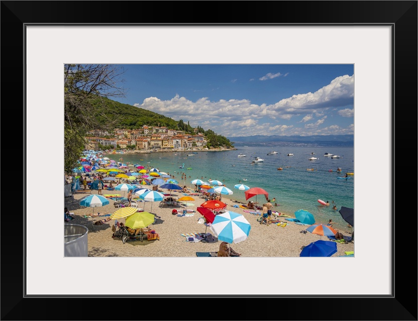 <p>View of beach and the town in the background in Moscenicka Draga, Kvarner Bay, Eastern Istria, Croatia, Europe</p>