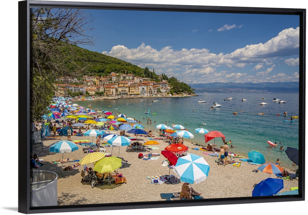 <p>View of beach and the town in the background in Moscenicka Draga, Kvarner Bay, Eastern Istria, Croatia, Europe</p>