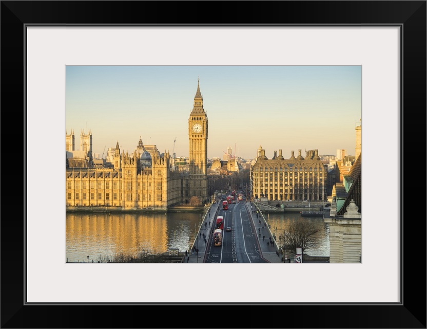 <p>High angle view of Big Ben, the Palace of Westminster, and Westminster Bridge, London, England</p>