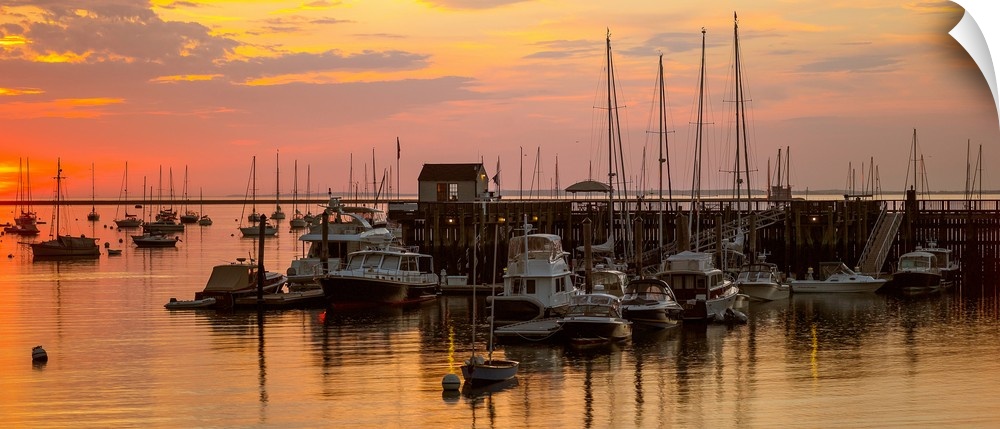 <p>View of boats at a harbor during sunset, Rockland Harbor, Rockland, Knox County, Maine, USA</p>