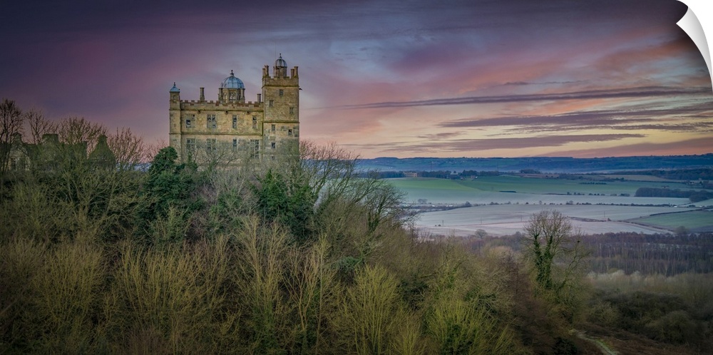 <p>View of Bolsover Castle and morning red sky, Bolsover, Derbyshire, England, United Kingdom, Europe</p>