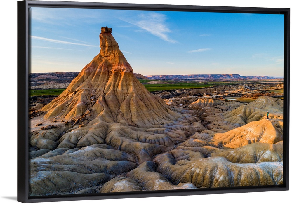 <p>Aerial View Of A Tourist That Admires Castildetierra At Sunset. Castildetierra, Arguedas, Bardenas Reales Natural Park, Navarre, Spain (MR)</p>