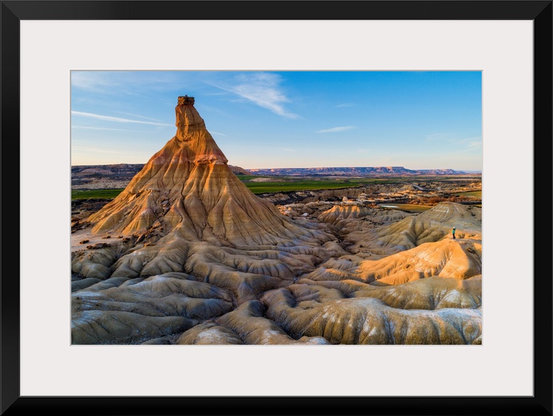 <p>Aerial View Of A Tourist That Admires Castildetierra At Sunset. Castildetierra, Arguedas, Bardenas Reales Natural Park, Navarre, Spain (MR)</p>