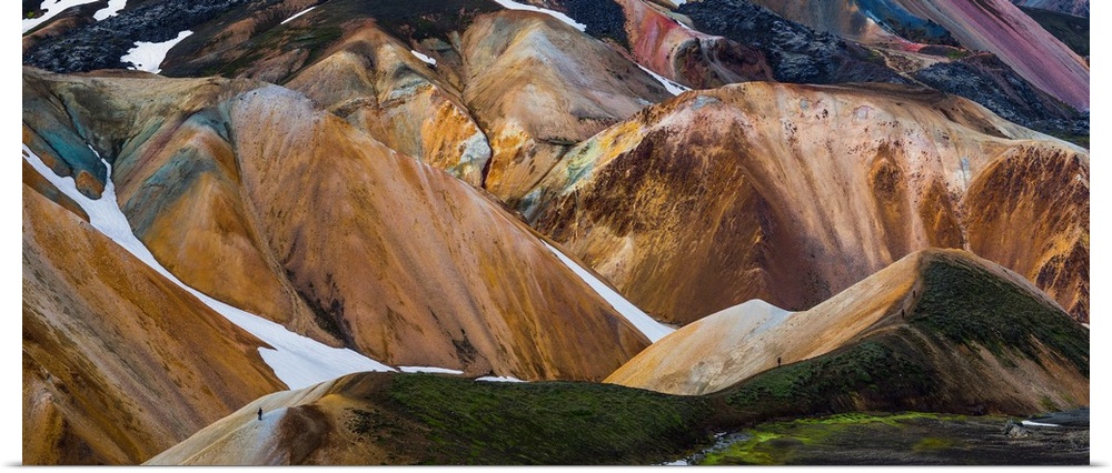 <p>View of colorful rhyolite mountains with snow, Landmannalaugar, Iceland.</p>