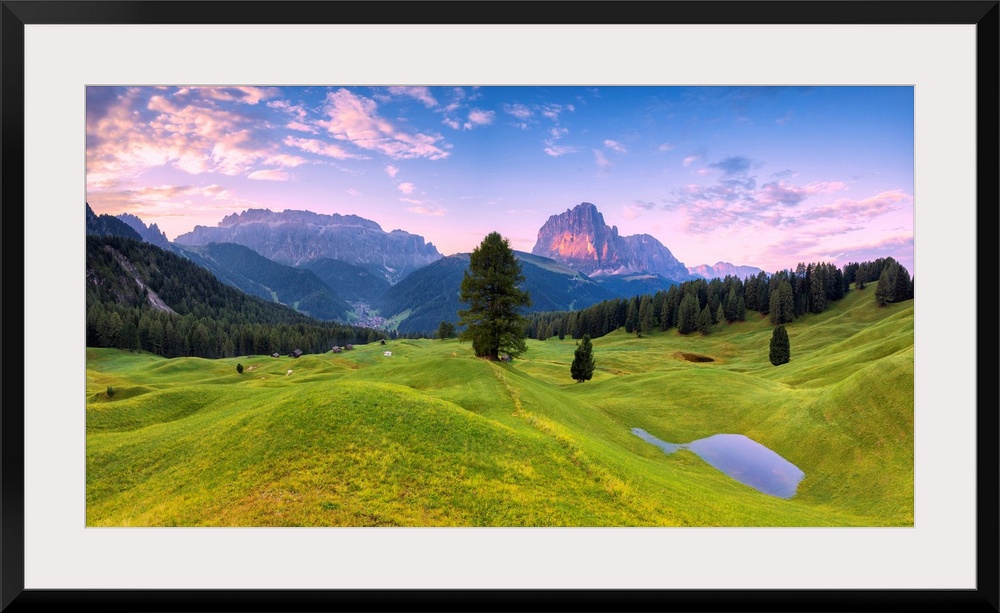 <p>Panoramic View Of Daunei Pasture After The Rain, Daunei, Selva Val Gardena, Gardena Valley, South Tyrol, Dolomites, Italy, Europe.</p>