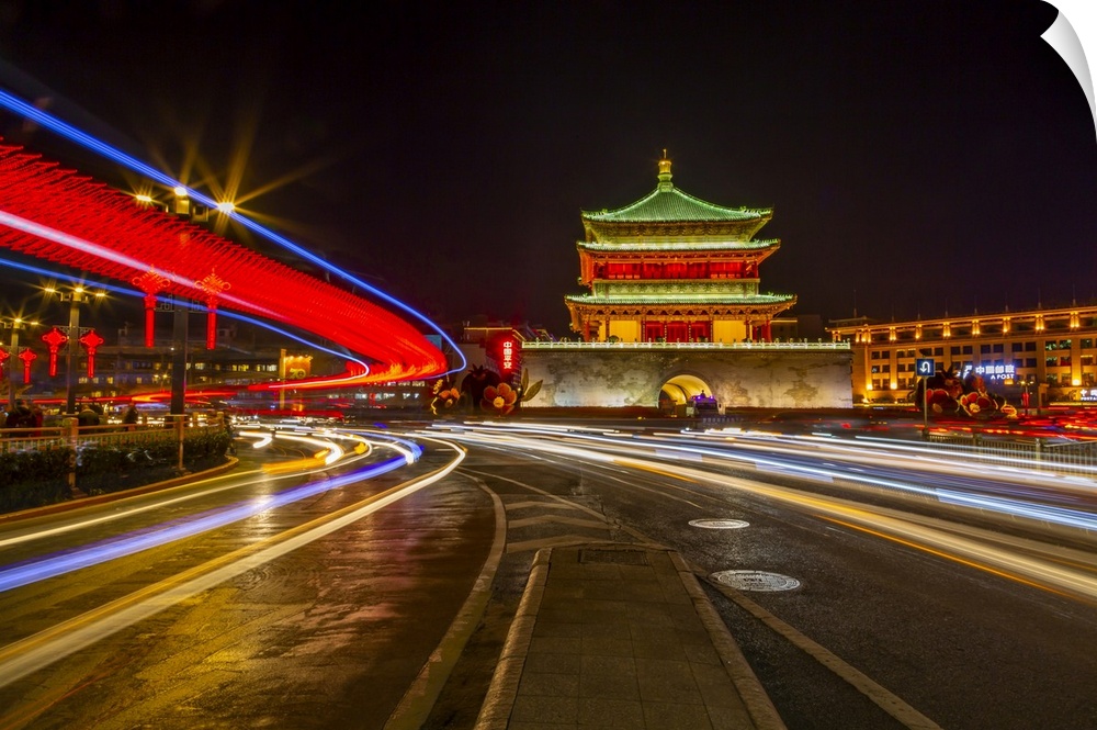 <p>View of famous Bell Tower in Xi'an city centre at night, Xi'an, Shaanxi Province, People's Republic of China, Asia</p>