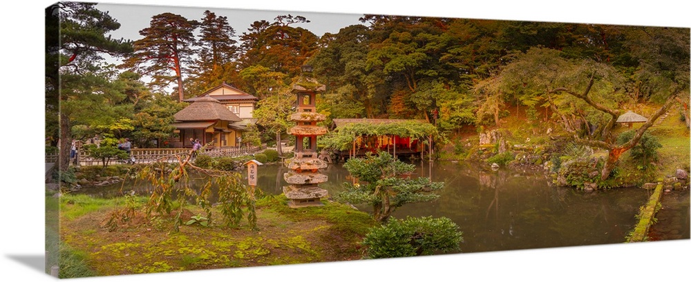 <p>View of Hisago-ike Pond and Kaiseki Pagoda in Kenrokumachi Japanese Garden, Kanazawa City, Ishikawa Prefecture, Honshu, Japan</p>