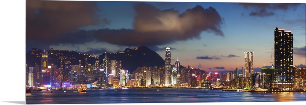 <p>View of Hong Kong Island and Tsim Sha Tsui skylines at sunset, Hong Kong</p>