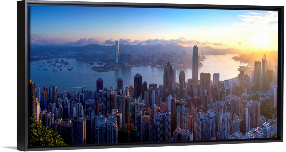 <p>View of Hong Kong Island skyline at dawn, Hong Kong, China.</p>