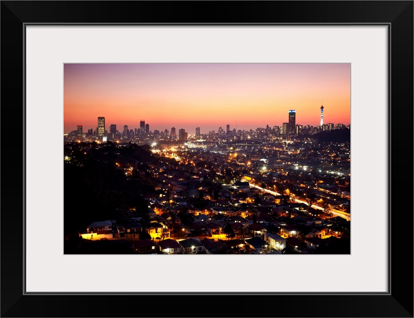 <p>View of Johannesburg skyline at sunset, Gauteng, South Africa</p>