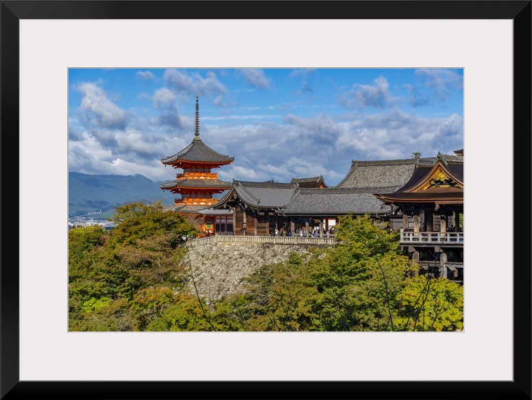<p>View of Kiyomizu-dera Temple, UNESCO, with city in background, Kiyomizu, Higashiyama Ward, Kyoto, Honshu, Japan</p>