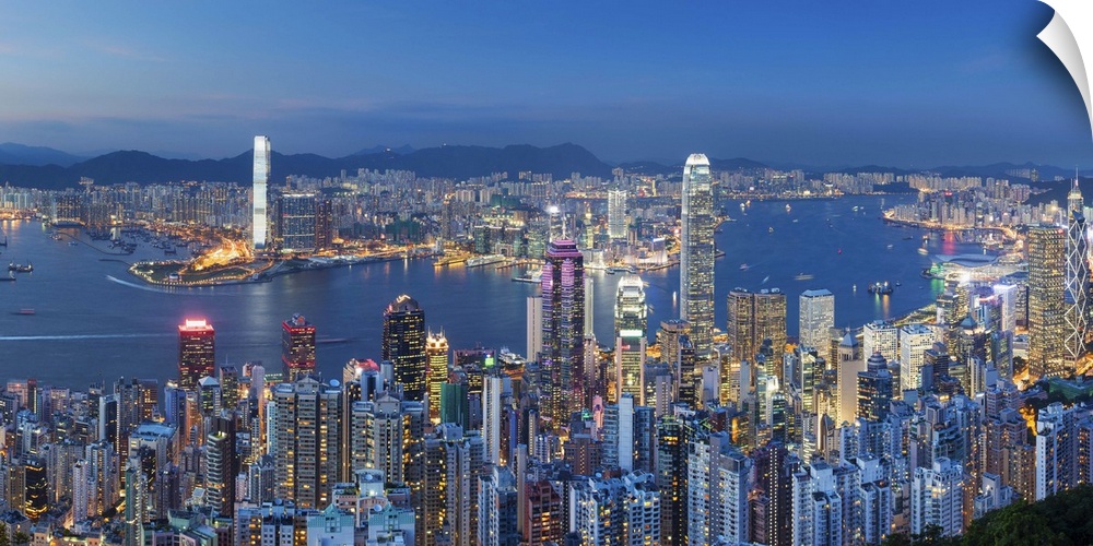 <p>View of Kowloon and Hong Kong Island from Victoria Peak at dusk, Hong Kong</p>