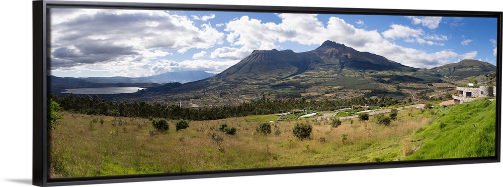 <p>View of Lago del San Pablo and Imbabura volcano from entrance to Sacha Ji, Imbabura Province, Ecuador</p>