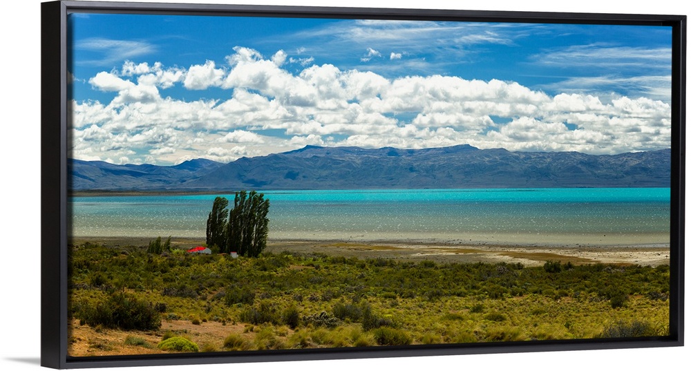 <p>View of lake with mountains in background, Lago Argentino, Santa Cruz Province, Patagonia, Argentina.</p>