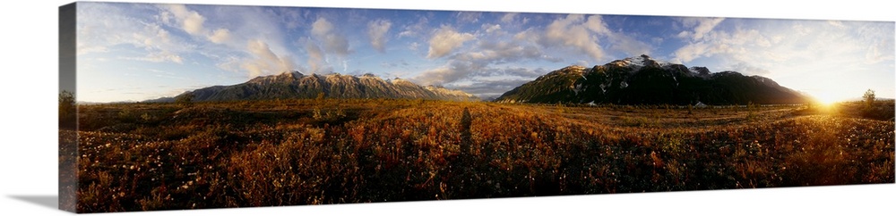 <p>View of landscape with mountain at sunset, Alsek River, British Columbia, Canada</p>