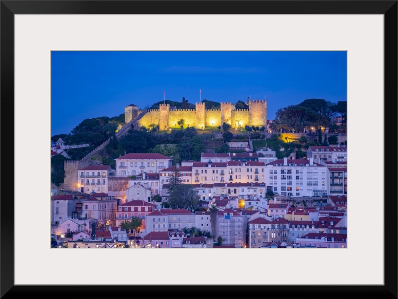 <p>View of Lisbon Castle from Miradouro de Sao Pedro de Alcantara at dusk, Lisbon, Portugal, Europe</p>