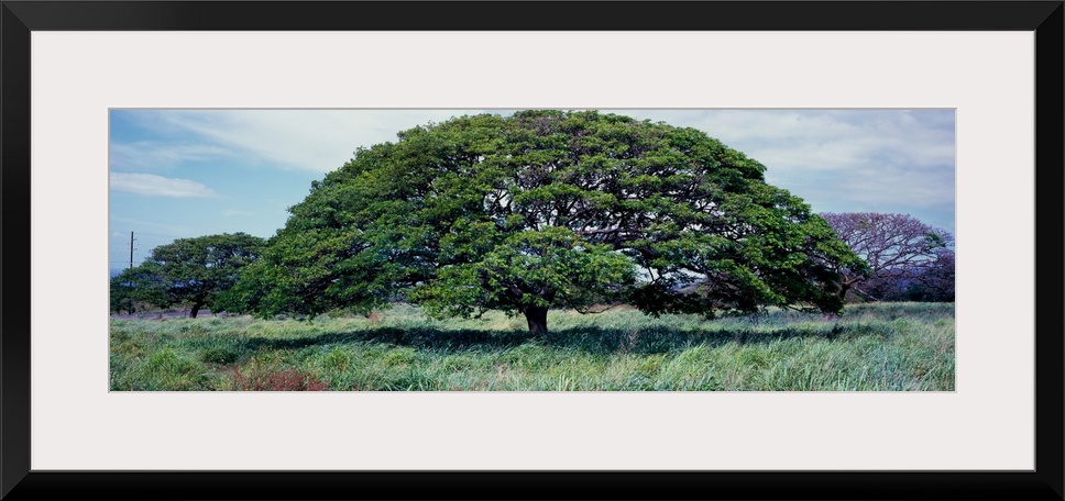 <p>View of monkeypod trees (albizia saman), pahala, hawaii county, hawaii, USA.</p>