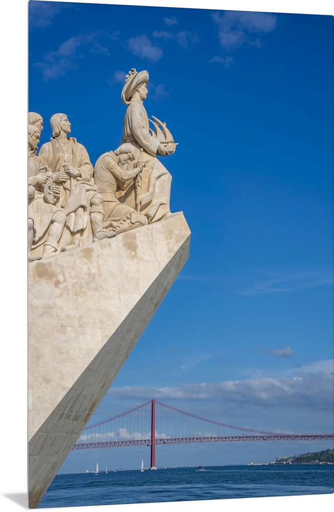 <p>View of Monument to the Discoveries (Padrao dos Descobrimentos) and 25 April Bridge on a sunny day, Lisbon, Portugal, Europe</p>