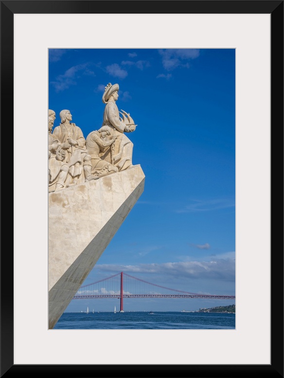 <p>View of Monument to the Discoveries (Padrao dos Descobrimentos) and 25 April Bridge on a sunny day, Lisbon, Portugal, Europe</p>