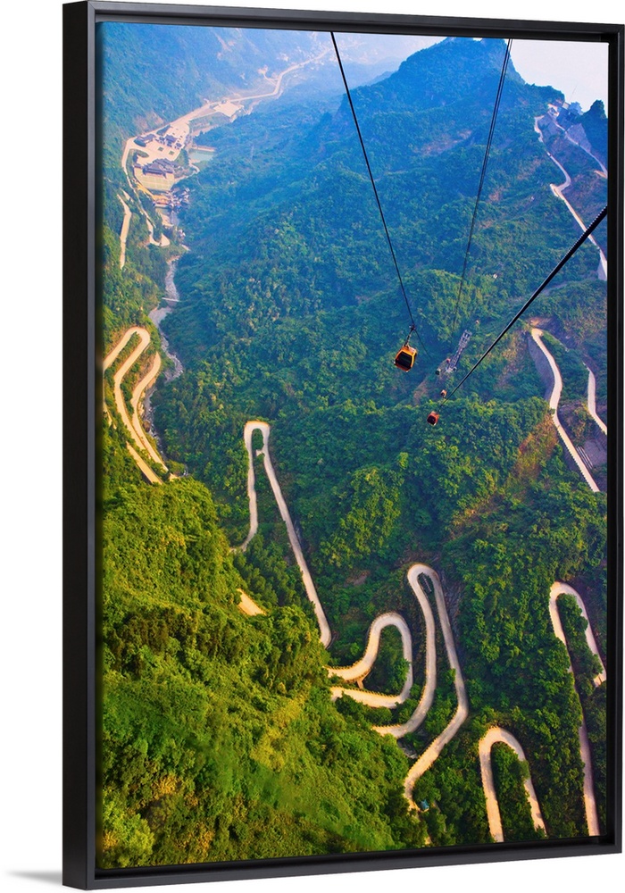 <p>View of mountains and winding road in Mount Tianmen, National Forest Park in western Hunan province of China.</p>