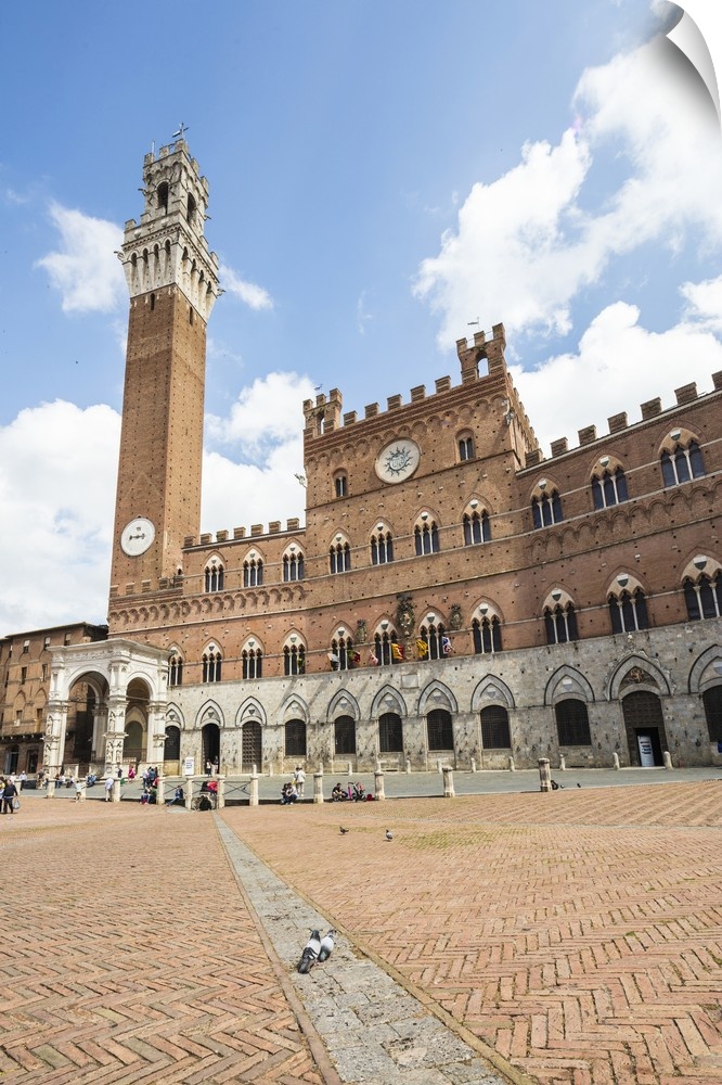 <p>View of Piazza del Campo with the historical Palazzo Pubblico and its Torre del Mangia, Siena, Tuscany, Italy</p>