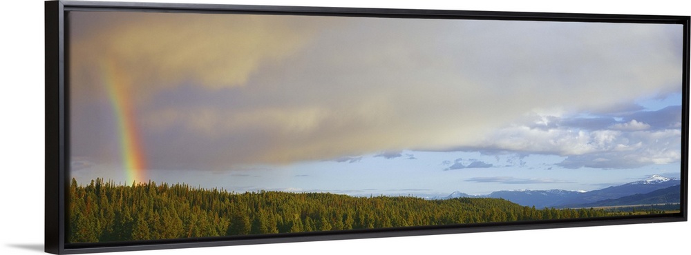 <p>View of rainbow at sunrise, Grand Teton National Park, Teton County, Wyoming, USA.</p>