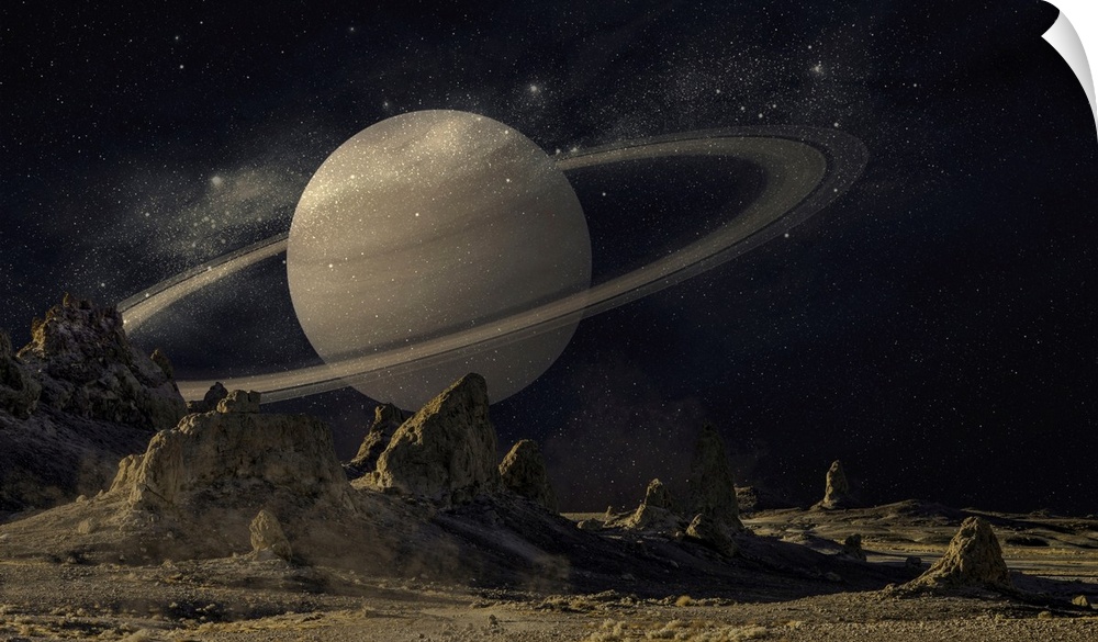 <p>View of Saturn from the surface of mars, a composite image.</p>