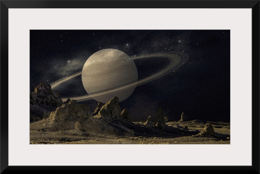 <p>View of Saturn from the surface of mars, a composite image.</p>