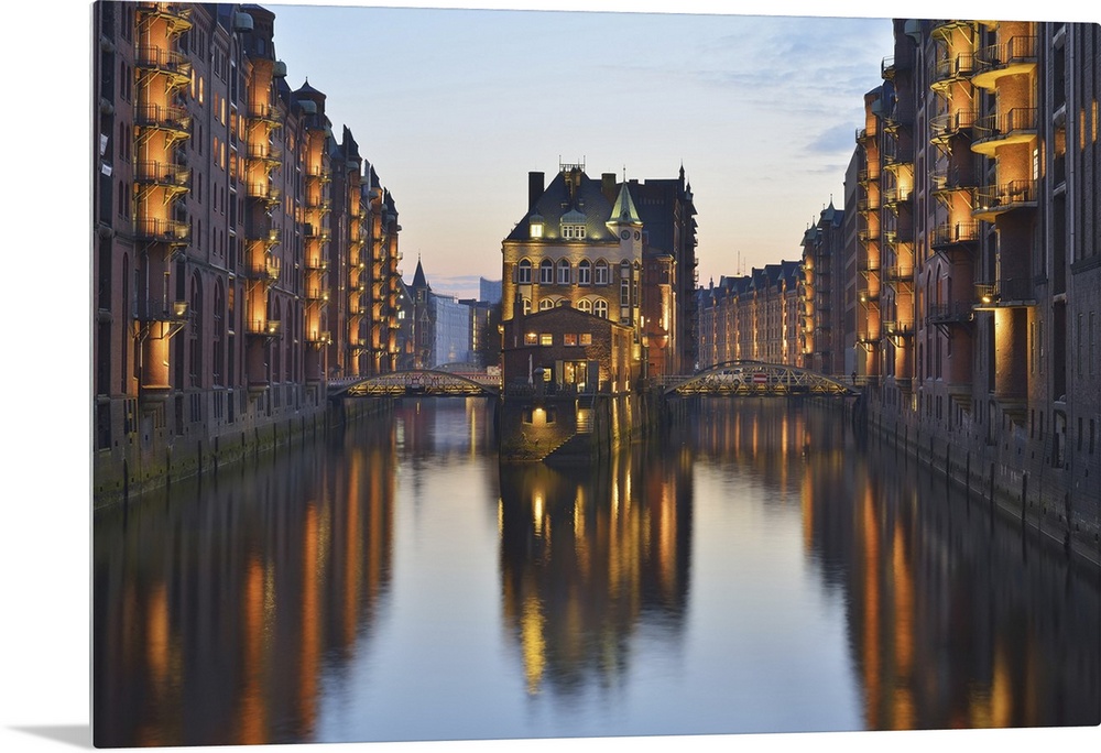 <p>View of Speicherstadt with River Elbe at Dusk, Hamburg, Germany</p>