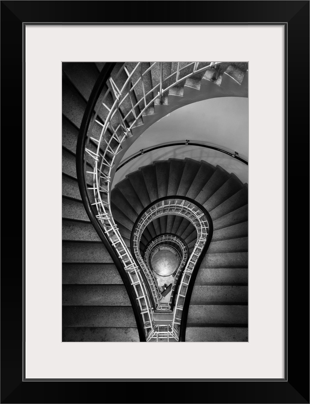 <p>Directly above view of spiral staircase at House of the Black Madonna, Prague, Bohemia, Czech Republic</p>