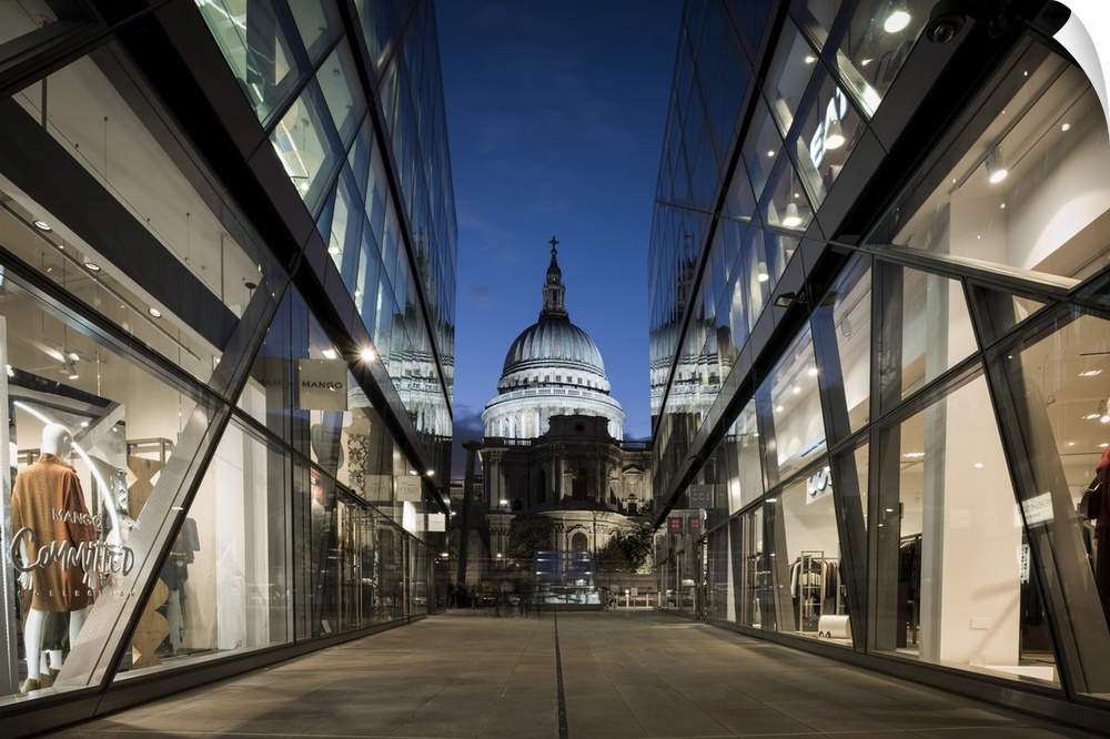 <p>View of St. Paul's Cathedral from One New Change Building at dusk, London, UK</p>