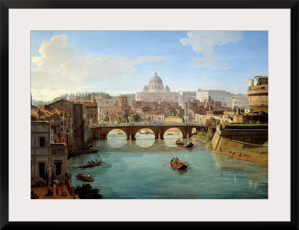 <p>View of St. Peter's Basilica in Rome, detail from the painting View of the Castel Sant'Angelo (Saint-Angelo) in Rome Panorama of the city, the Tiber and the Castel Sant'Angelo, mausoleum of the Emperor Hadrian. Painting by Gaspare Vanvitelli (Gaspar van Wittel, Caspar Van Vitelli) (1653-1736), 18th century. Beaux-Arts Museum, Rouen, France</p>