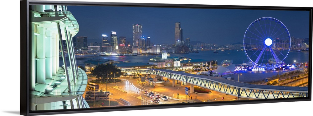 View of Star Ferry pier, observation wheel and Tsim Sha Tsui skyline, Hong Kong, China
