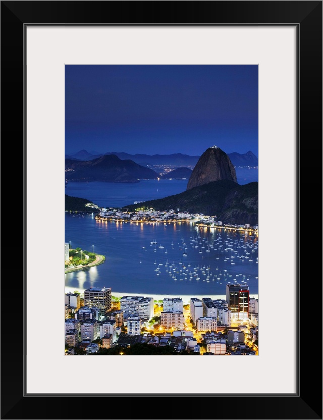 <p>View of Sugar Loaf Mountain (Pao do Acucar) and Botafogo Bay at dusk, Rio de Janeiro, Brazil</p>