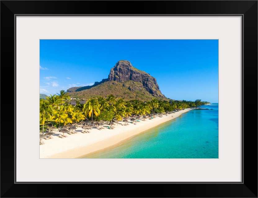 <p>Aerial View Of The Beach Of The Beachcomber Paradis Hotel, Le Morne Brabant Peninsula, Black River (Riviere Noire), Mauritius (Pr).</p>