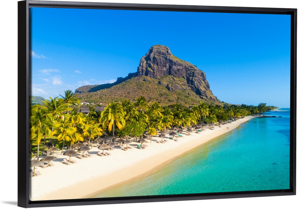 <p>Aerial View Of The Beach Of The Beachcomber Paradis Hotel, Le Morne Brabant Peninsula, Black River (Riviere Noire), Mauritius (Pr).</p>