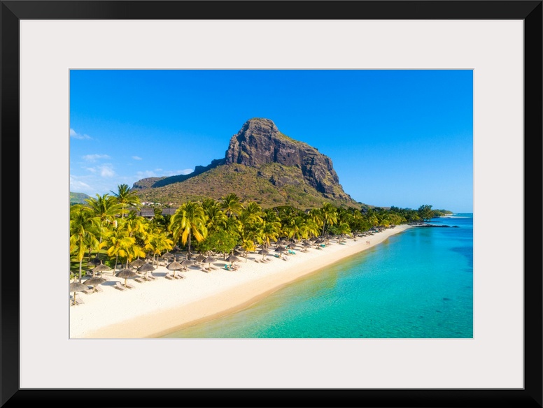 <p>Aerial View Of The Beach Of The Beachcomber Paradis Hotel, Le Morne Brabant Peninsula, Black River (Riviere Noire), Mauritius (Pr).</p>