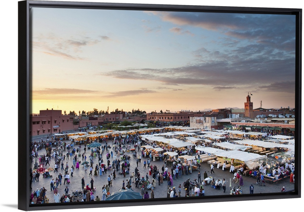 <p>View of the Djemaa el Fna at sunset, Marrakech, Morocco, North Africa, Africa</p>