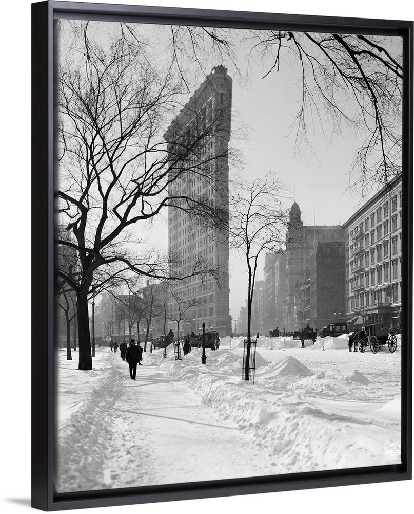 <p>View of the Flatiron Building after a snow storm in New York City. Photograph, c1905.</p>