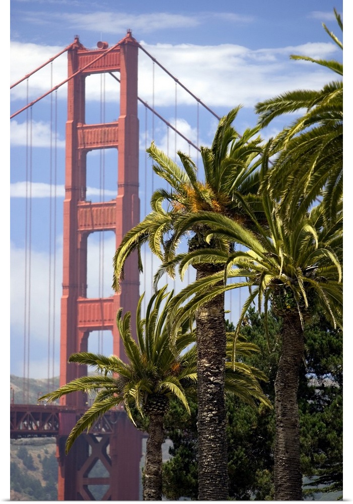 <p>View of the Golden Gate Bridge with Palm trees from the Presidio in San Francisco.</p>