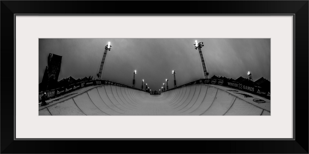 <p>Black and white panorama of the Halfpipe at the 2016 XGames at Aspen, Colorado.</p>